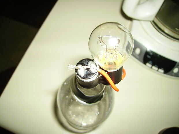 Después de asegurar a la primera bombilla, dale la vuelta y soldadura a la segunda bombilla.