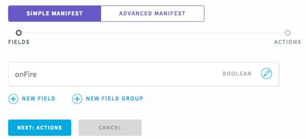 Ahora vamos a crear un manifiesto para nuestro tipo de dispositivo de "Sensor de la llama".