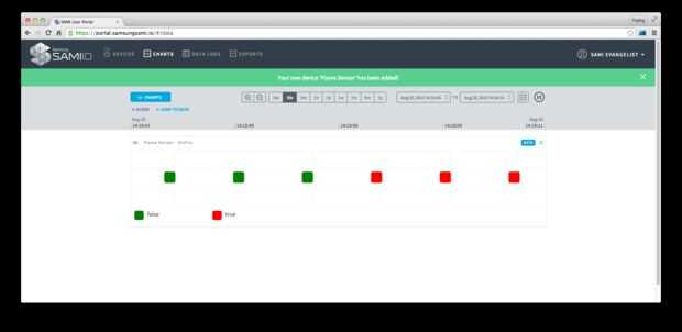 Ver los datos de su dispositivo como se genera haciendo clic en el nombre del dispositivo en la caja del dispositivo. Esto le lleva a la visualización de datos. Desde allí, haga clic en el botón "+-cartas" y comprobar "onFire" para visualizar un gráfico para cada campo. (Leer este post para más información sobre visualización de datos.)