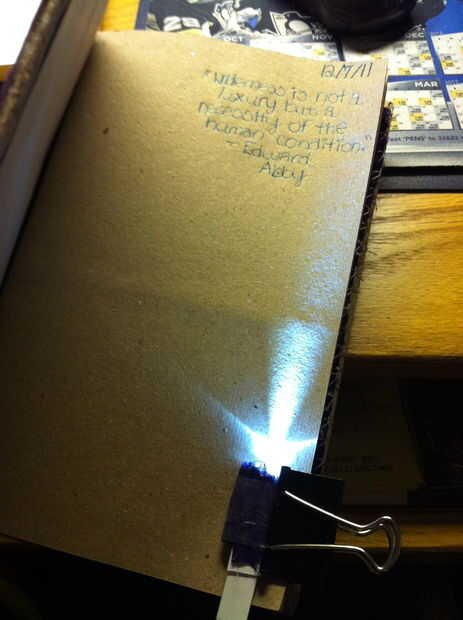 3. utilizando un clip binder para fijar la luz en su libro.