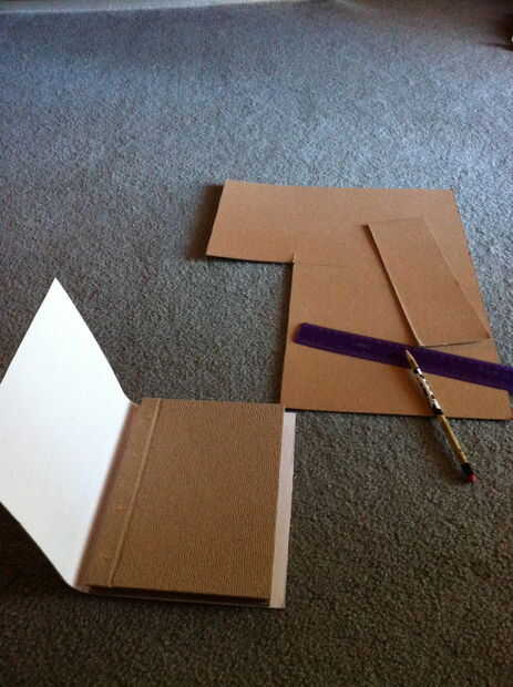 Después de que las páginas se han secado y ahora están conectadas juntos, utilice un lápiz y una regla para medir hacia fuera suficiente para cubrir completamente el paquete de papel de cartón. Asegúrese de incluir la columna o ancho de la pila de papel en sus medidas.