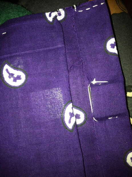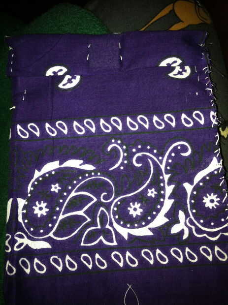 Una vez que el tejido se mide hacia fuera, doble a la tela por la mitad para hacer la bolsa y coser los bordes con una aguja y el hilo para sellarlo. NO coser los bordes que forman parte de la longitud que mide hacia fuera para las aletas! Estos necesitan estar sueltos por el momento.