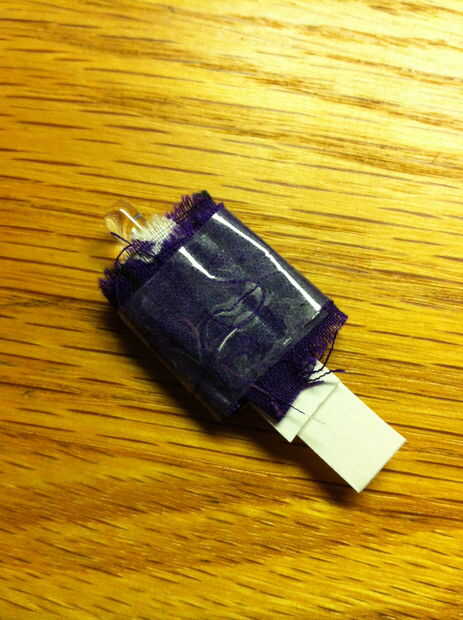 Después de construir la base LED con interruptor como se muestra en el tutorial, puede hacer su ligero vistazo un poco más atractivo y encajar en el diseño de tu libro por algunas de la tela usada para hacer el bolsillo interior alrededor de la luz o alguna otra tela/cinta de embalaje.
