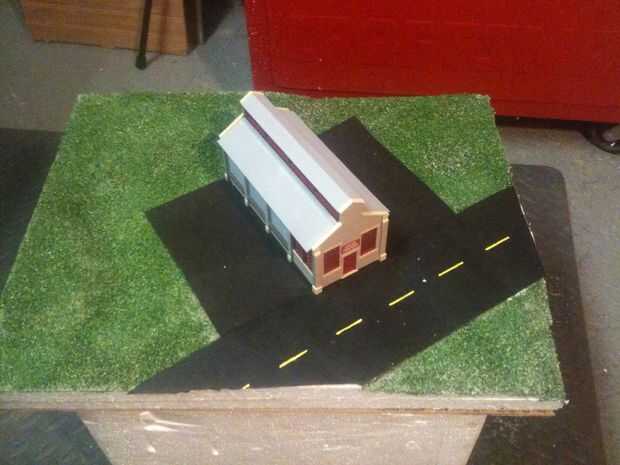 Agregar el edificio es un simple como colocarlo a donde pertenece. Puede pegar el edificio hacia abajo si lo desea (lo hice no porque estaba pidiendo prestado el edificio de mi diseño de tren modelo.)