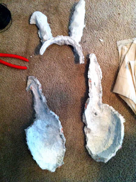 Una vez que la silicona se seque, hacer un mothermold de cal ultra y cañamazo - Esto evitará que el molde de silicona tirarse alrededor cuando vierta la resina en él. (Así que ahora, que todavía no han visto lo que parece el interior del molde de silicona, tiene sin embargo retirar de la arcilla.) Usted estará haciendo la máscara en al menos 3 piezas - el derecho de la mitad, la mitad izquierda y la parte posterior de las orejas. Dependiendo de su escultura y cortes, se puede romperlo más. Separar las secciones con plastilina y completar una sección a la vez.