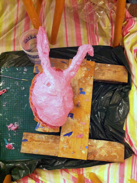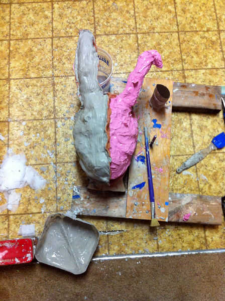 Después de mezclar todos los elementos necesarios (los agentes de dos silicona, más el espesante) extensión la silicona sobre la escultura (utilicé una varilla de mezclar)