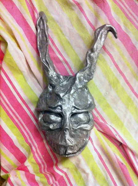 Así que aquí está una foto de mi máscara de resina aerosol-pintada, después, lijado, tomando la dremel, hacer pequeñas reparaciones con pistola de pegamento, para los ojos-agujeros perforados - woot.