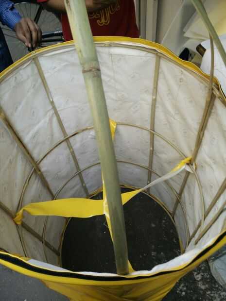 En primer lugar, encontrar y cortar los bambúes en la mitad para preparar el marco. Utilizando estas mitades hacen un cilindro mientras que la adición de bambúes en las piezas verticales en forma de anillos. (agregar tantos como necesite mantener estable la estructura)