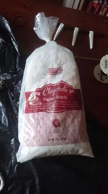 Después de salir en varios materiales, me decidí por arcilla de papel porque es asequible y bien ha comentado por otros. Lo confieso, este material es muy aseado! Es simplemente polvo de papel y polvo de celulosa. Añadir agua y tienes algo a medio camino entre la arcilla y papel maché. Tomó un rato para conseguir utilizado a, pero después de este proyecto definitivamente puedo decir que lo usaré otra vez.