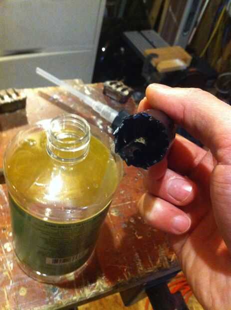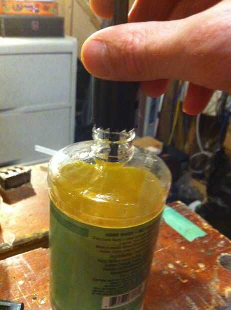 Utilice su botella dispensador de jabón plástico para determinar el tamaño del agujero que necesita hacer. Puede medir o sólo coge unos pedacitos de Sierra de agujero y comparar a él.