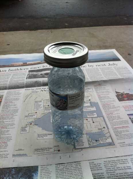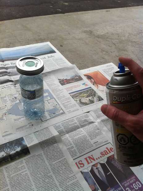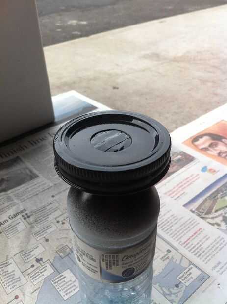 Ahora sólo ponga la tapa y rociar una capa de imprimación. Sostenga de la cartilla entre 6 y 10 pulgadas de la tapa del tarro de masón y spray de forma rápida, movimientos de barrido. No rocíe en demasiado densamente o la pintura se corra. Deje que se seque durante al menos una hora antes de pintar.