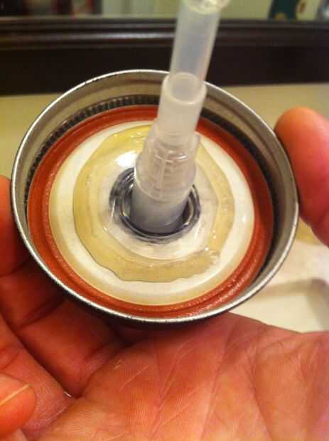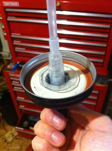 Luego atornille la bomba. Usé una arandela de goma como un espaciador y también para hacer un buen sello en la parte superior.