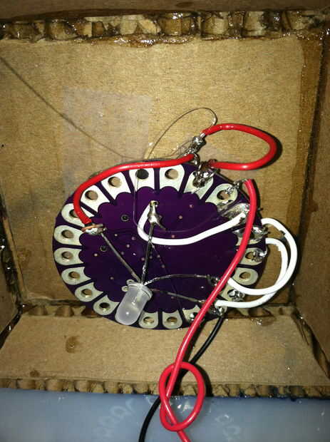 El otro era simplemente una luz de fondo para las piezas de policía caja vinilo acrílico. Baterías 4AA y una lillypad habían terminado mi tecnología.