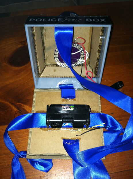 Un LED pulsado con el gimoteo de la TARDIS que fue producida por el altavoz.