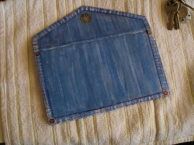 subió con la idea de hacer un bolso de "denim" cubierto de pintura acrílico y cartón.