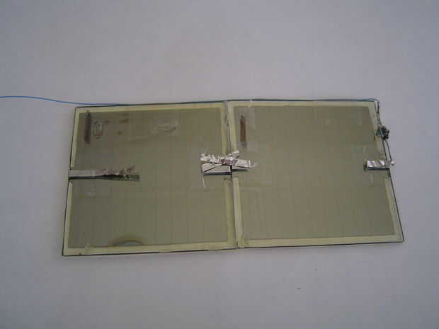 Corte y tira un cable de unos 20 cm de largo. Uno de los extremos de la misma de la soldadura del diodo en el panel inferior, luego doblar y cinta adhesiva a lo largo de la longitud del panel. Este cable se soldar más tarde para el soporte de la batería de DS.