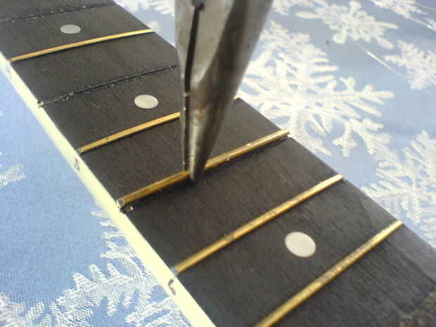 Bien, tenía un viejo archtop ahí, y ser un defensor de la broca 'sin guitarra nunca debe morir' entero, decidí probar una idea que tuve. Guitarras sin trastes son interesantes, pero les falta sostener y morder. Claro, hay unas guitarras con fretboard