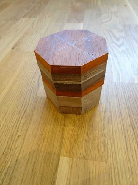 En la segunda pieza quité los bordes. (Esto hizo más fácil girar). El roble era muy duro y difícil de girar.