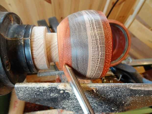 Coloque la tapa nuevamente y si se activa un eggbox en una clase de madera puede línea su grano hacia arriba. Ahora gire la tapa en su forma final.