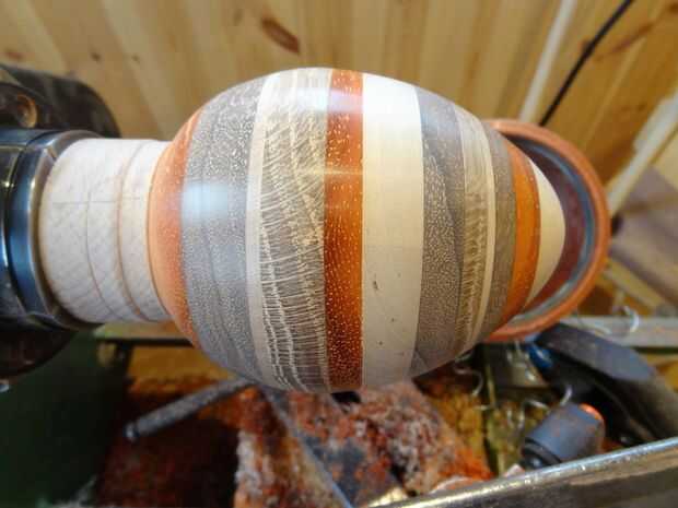 Continuar con la parte inferior y cuando le complace volver la tapa, baje la velocidad del torno y la arena. Usé red 240-600. Poner poco de cera en, tomar un descanso, girar el torno acelerar nuevamente y pulirlo para arriba.