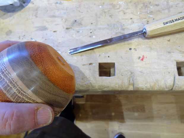 Tomar el huevo del torno y corte la pequeña marca con el cuchillo o una herramienta de talla.
