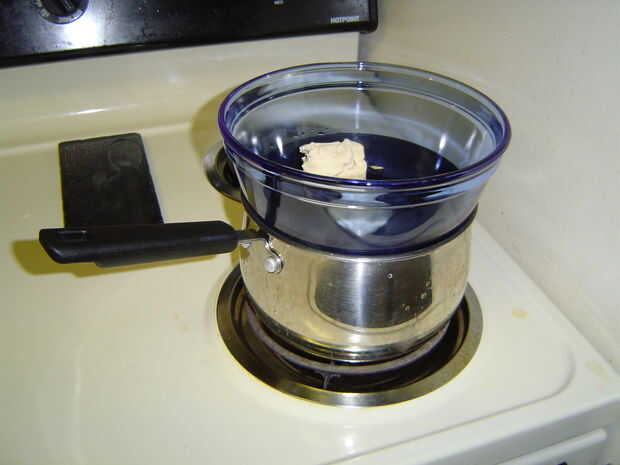 Coloca el tazón a la cacerola de vidrio y el calor hasta un ligero hervor.