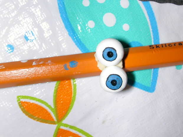 Usar granos perforados pequeños como ojos. Pinto blanco y luego pintar un círculo ancho negro en y alrededor del agujero central perforado. Luego pintar el color de los ojos en la parte superior, dejando una delgada línea negra alrededor del iris.
