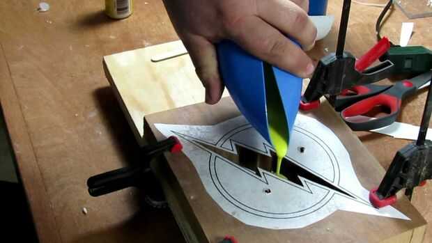 Una vez tienes el mezclado es la hora de verter la resina. Llene su cavidad a la altura deseada y se deja reposar unos minutos. Mientras está saldando, burbujas que suben a la superficie. Como lo hacen, puede utilizar una variedad de métodos para reventarlas. A veces sopla sobre ellos con una paja pop pasa ellos, distante con un secador de pelo en baja puede así, o incluso un encendedor. Esta vez llegamos de la antorcha del propano, que funciona realmente bien. Sólo no incendiarse el papel como lo hicimos. Una vez que se extraen todas las burbujas, necesita dejar que la cura de la resina por el tiempo recomendado. Esto variará según marca y tipo. Famowood debe curar durante unas 12 horas.