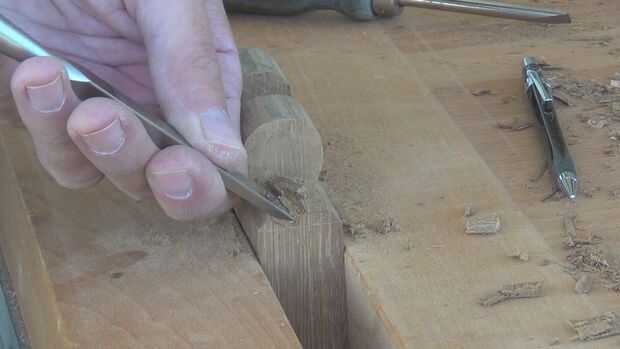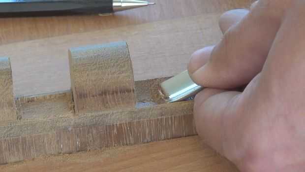 Una gubia de talla de un radio similar puede ayudar a perfeccionar el perfil, donde es posible el acceso de los extremos. Y un raspador convexo es útil en las tres secciones donde el acceso está restringido.