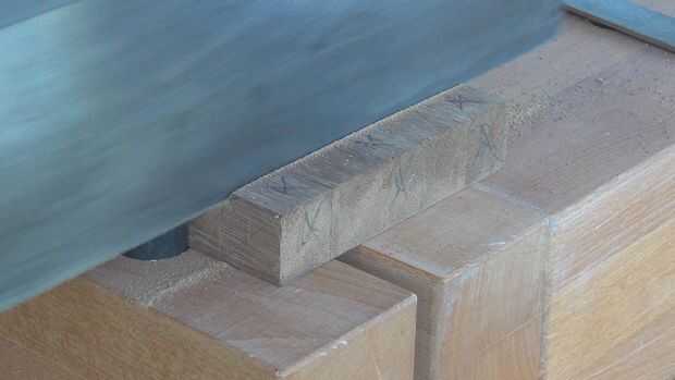 Vio, en el ancho de los componentes, casi hasta los puntos de transición. No quieres ver todo el camino, porque la transición debe terminar un rincón fresco 90 grados (un lado un bisel, el otro la tangente al círculo), no el extremo romo de un corte de sierra.
