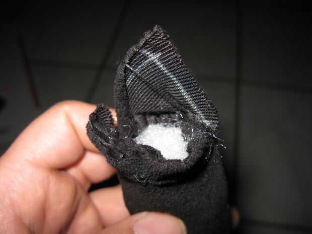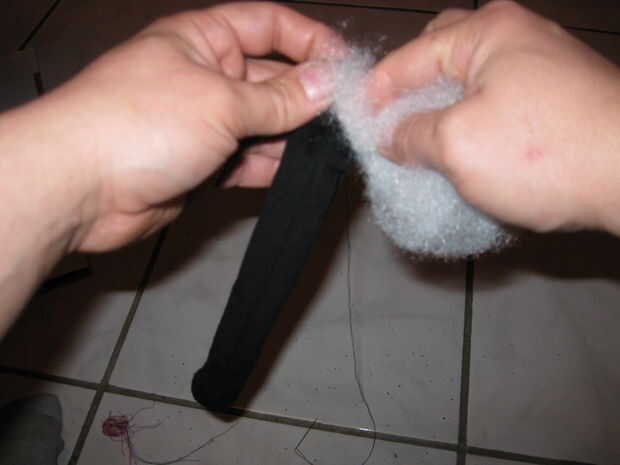 A continuación, tomar las brazos, piernas y darles vuelta adentro hacia fuera. Están listos para rellenar con relleno de fibra. Generosamente rellenar con relleno de fibra y usar algo como una regla para ayudar a empujar hasta el fondo. El relleno tendrá una tendencia a bulto para arriba. Si esto ocurre colocar la zona afectada entre las palmas de las manos y rodarlo hacia adelante y hacia atrás como si estaban tratando de calentar tus manos.