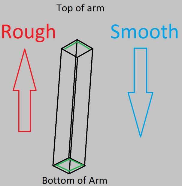 ¿Recordar los cuadrados de 1 "x 1"? Bueno, ahora usted tiene el placer de coser a las cimas y los fondos de cada brazo y pierna. Teniendo en cuenta la cantidad limitada de espacio te sugiero coser estos a mano. La parte inferior de la pierna/brazo que es también la parte inferior de la cara lisa va a coser todo el camino alrededor de la sección de 1 "x 1". La parte superior del brazo/pierna es sólo va a ser solamente cosido alrededor de la mitad de la 1 "x 1". El color verde en el diagrama representa lo que se cosió durante esta etapa.