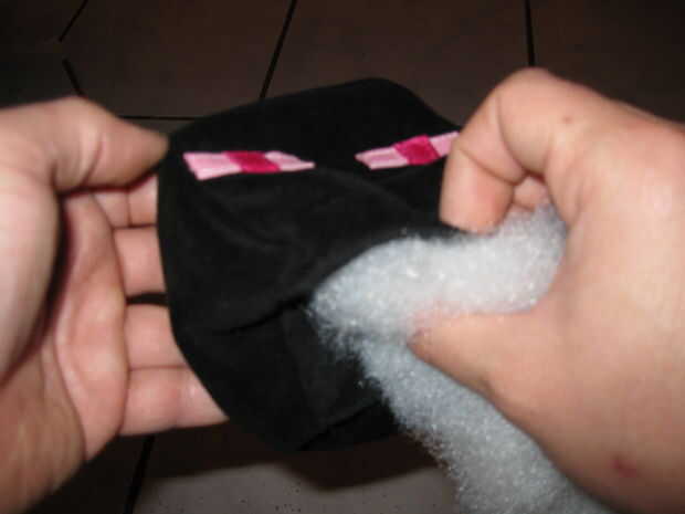 Ahora tienes una cabeza de Enderman listo rellenar. Rellenar generosamente la cabeza con relleno de fibra. Cuando usted siente que se llena bastante material tienes que usar la puntada de resbalón para cerrar la costura. Logro completo! Que terminado el cuerpo. Póngala a un lado.