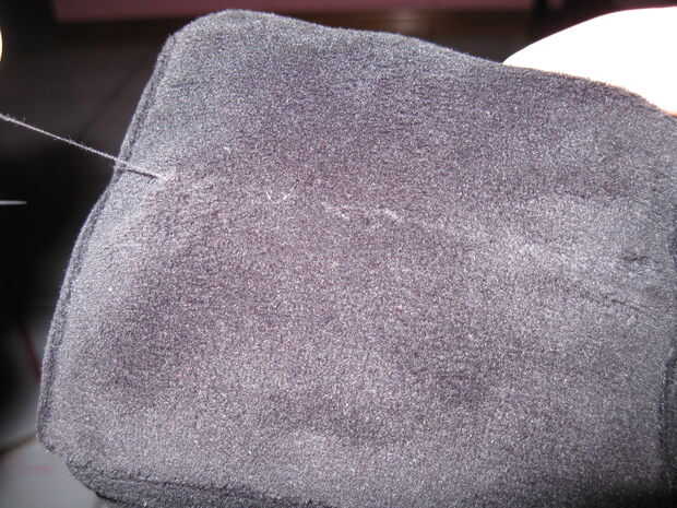 A continuación tome la última pieza que pertenece al cuerpo que es una 4 "x 2" pieza. Perno en la parte inferior del cuerpo. La parte inferior del cuerpo es la parte inferior de la cara lisa. El flujo del patrón de la pieza inferior no importa mucho porque es en la parte inferior del peluche. Sin embargo yo personalmente quería el lado liso para fluir desde la parte delantera del peluche en la parte trasera. Una vez que tengas en el lugar, la puntada. Ahora el cuerpo es completo y ahora podemos pasar a preparar el cuerpo para la recepción de la cabeza.