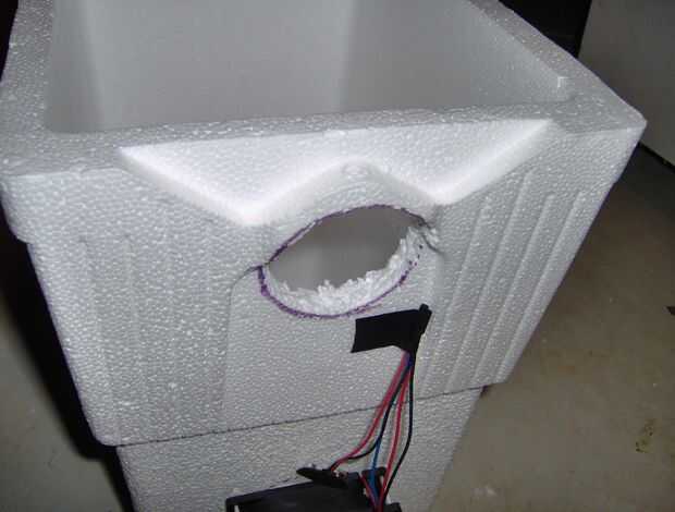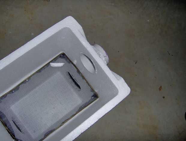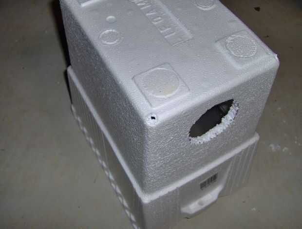 4. haga algunos agujeros en las esquinas delanteras inferiores (cerca del agujero con sin ventilador). Esto permitirá que el agua de hielo derretido drenar.