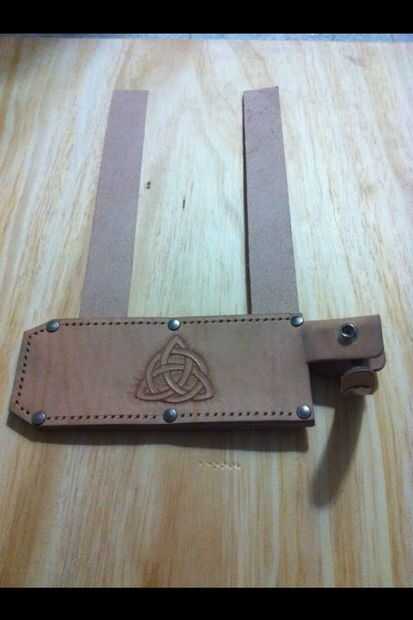 Para perforar los agujeros se puede utilizan el mismo golpe de cinturón giratorio utilizado para los remaches o puede utilizar lo que utilicé aquí que es un punzón de cuatro puntas de cuero. Solo te gusta por sus tres capas y el punzón a través del martillo.