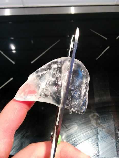 Los pellets de plástico deben ser calentados en agua para convertirse en lo suficientemente suave como para ser maleable (no muy) hirviendo. Una vez que la olla desarrolla pequeñas burbujas en la parte inferior el agua está suficientemente caliente para derretir el plástico. Reloj hacia fuera porque el plástico estará caliente, no quemar, pero tenga cuidado de todos modos. Tijeras de trabajo bien en el corte del plástico, sólo asegúrese de que las tijeras estén mojadas de lo contrario el plástico se pegue. (fotos 2-6)