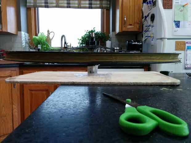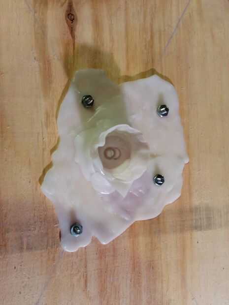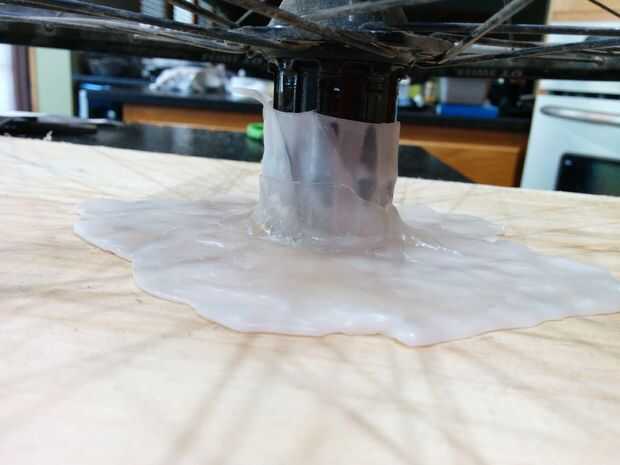 Crear una hoja de unos 4" cuadrados y fíjelo a la parte superior de la pieza que acaba de crear. Sólo suavizar la parte superior de la pieza anterior de lo contrario las crestas que se alinean con el eje libre se obtiene sesgadas y deberás empezar encima (esto me pasó). Si usted quiere que usted puede entonces pegar el plástico al final de la etapa, asegúrese de que quede centrado. La adherencia del plástico no es lo suficientemente fuerte como para sostener la pieza en el escenario por mucho tiempo, pero debe quedar por un tiempo. (fotos 13-17)
