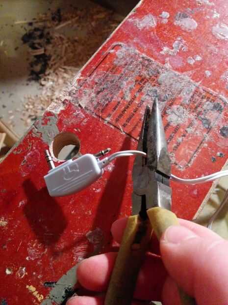 Comienza por cortar el cable de los auriculares antiguos y cargador viejo o comprar uno de esos cargadores baratos aeropuerto con un montón de adaptadores diferentes, así no tienes que sacrificar totalmente un cargador (esto es lo que hice).