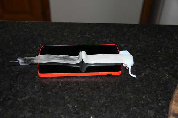 He utilizado estos métodos para que el plástico fundido nunca tocaría mi teléfono, sería malo que se pegan. Podría evitar el problema del auricular cargador siguiendo más de cerca los contornos del teléfono específico, pero quería que sea tan universal como sea posible.