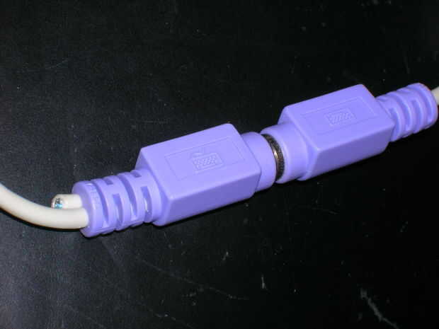 Si usted está usando algún otro explorador de PS2 o no quiere cortar la cola de su CueCat, necesita encontrar el conector hembra que puede romper en cables separados. Lo más fácil sería conseguir un cable de extensión de teclado y corte el extremo se necesita.