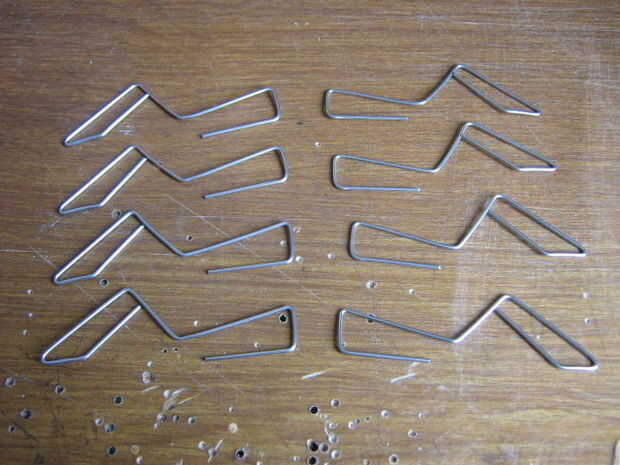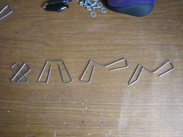 Doblar los clips en la forma indicada en los cuadros. Hacer ocho piernas. Cortan en el punto indicado.