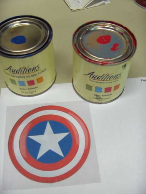 Imprimí una imagen del escudo de Capitán América y seleccionar las pinturas azules y rojas planeó sobre el uso de la pantalla
