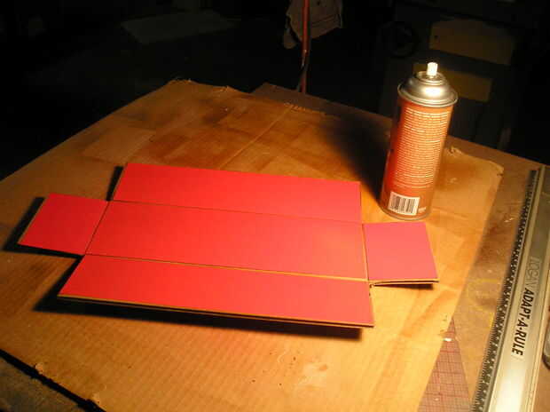Papel de colores elegido para la ocasión es cortada a la medida y aplicada al cuadro en blanco con adhesivo en aerosol.