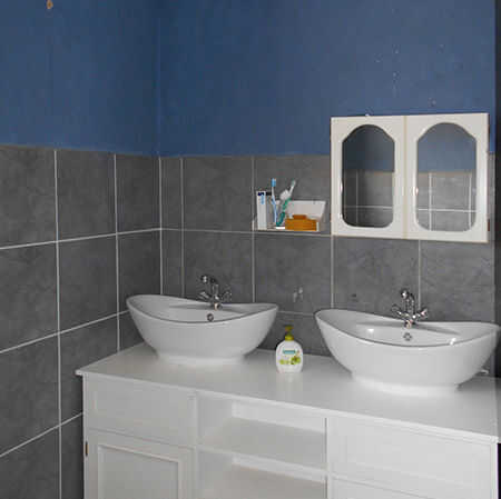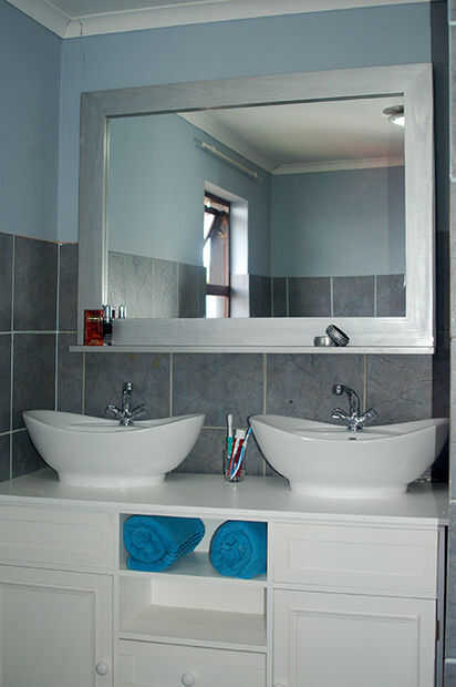 Finalmente conseguí ronda que componen el gran espejo enmarcado para la pared por encima de las cuencas de vanidad. La vanidad nuevo reemplaza un fregadero de pedestal con un mueble encima de baño dinky. Ahora hay un montón de espacio en la vanidad de todos nuestros esenciales del baño y ahora puedo cambiar el armario con un espejo grande, marco.