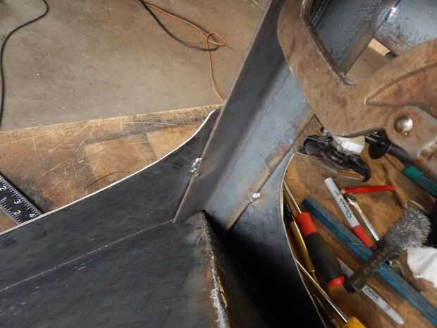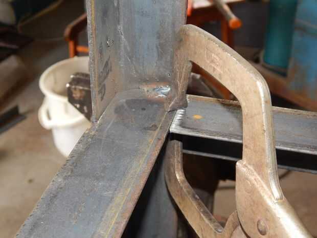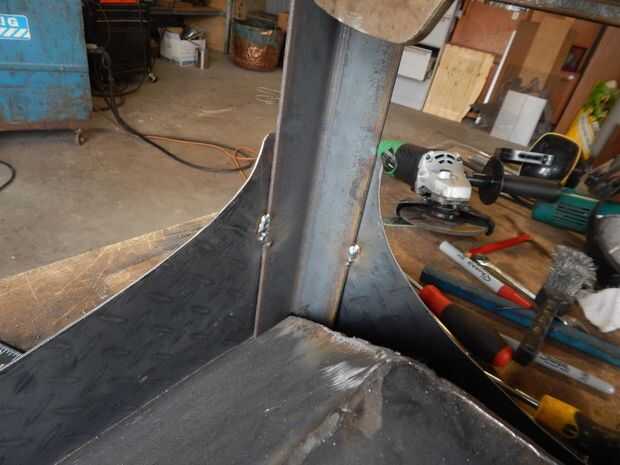 He añadido a los miembros cruzados de hierro de ángulo entre las piernas. En los extremos de apoyo los soportes verticales de la rosticería. Del lado de agregar algo de fuerza y puede utilizarse para apoyar un estante.