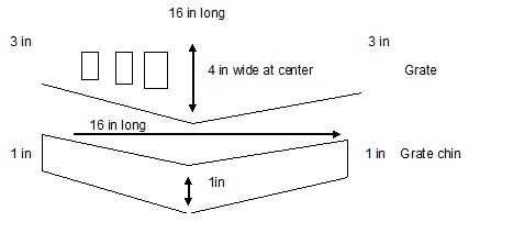 Dibuja las ranuras a cada lado de la parrilla, con una pulgada de espacio entre ellos y cortar de la rejilla con el cuchillo del exacto. Dibujar y cortar un chin de rejilla ancho de 1 pulgada en la espuma de EVA y péguelo a la parte inferior de la rejilla. Una vez que el pegamento se haya enfriado, cortar la rejilla por la mitad verticalmente, ahora tienes dos imágenes de espejo. Oriéntelos para que la rejilla se envuelve alrededor de la nariz y la barbilla. Pegamento caliente la parrilla detrás juntos en ese ángulo y deje enfriar. Cubra la parrilla con papel maché, dejar secar y luego pintar con pintura acrílica blanca.
