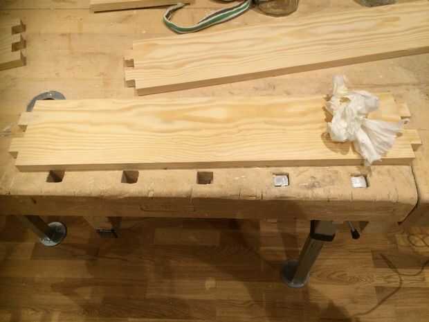 Las articulaciones del dedo que el pegamento de madera se pega mejor en llano de madera con cinta adhesiva.