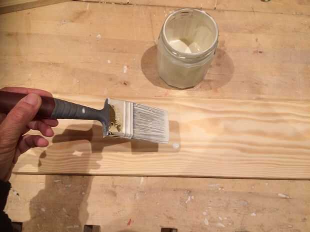 He decidido pintar el estante. Tenga en cuenta que pino se convertirá más oscuro con el tiempo cuando se expone a la luz. No me gusta y quiero el color de la plataforma para que coincida con las ramas de abedul. Por eso pinté el grisáceo del estante.