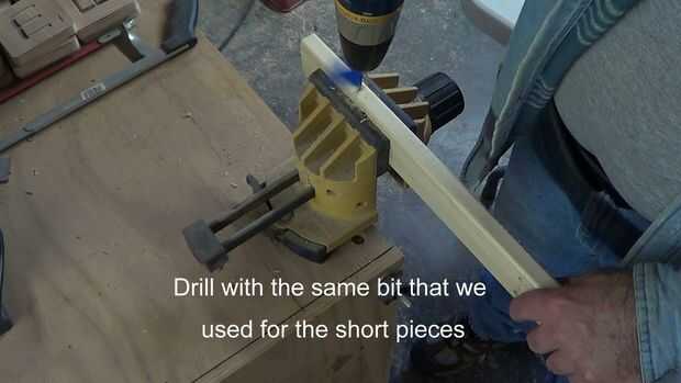 Perforar todos los agujeros de 5/8" de profundidad en los rieles largos y carriles más cortos de 12", por favor revise el video o fotos para más detalles.